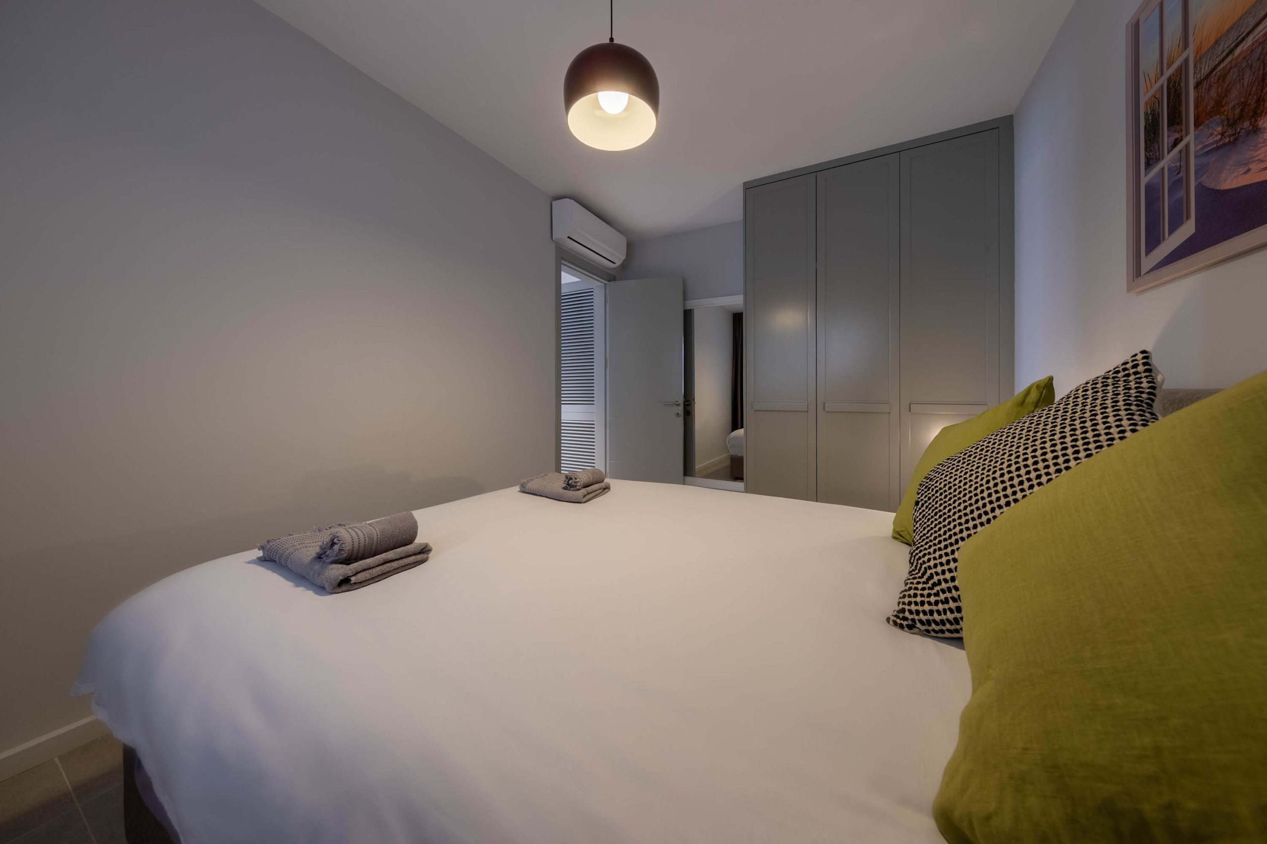 A Spacious 90m2 Three Bedroom Penthouse featuring a huge roof top with a jacuzzi bath tub. This tastefully furnished apartment has a large living room and 2 seperate bedrooms. The apartment has a queen size bed in the master bedroom, and 2 single beds in the other, 2nd bedroom. The roof top is accessible via spiral staircase and therefore guests travelling with young kids should practice extra care when booking this apartment. The Apartment is equipped with all essentials such as air conditioning, washing machine, iron, TV and more. Fully equipped kitchen supplied with gas/electric hob, oven, refrigerator & freezer, toaster, kettle dishes/cutlery, and kitchen utensils.