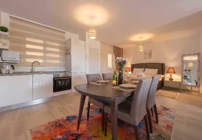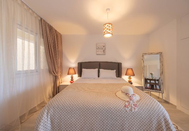 A Spacious 68m2 Two Bedroom apartment with a spacious and stylish living room and 2 seperate bedrooms. The apartment has a queen size bed in the master bedroom, and 2 single beds in the other, 2nd bedroom. The Apartment is tastefully designed in a modern decor and it is fully furnished with all essentials such as air conditioning, washing machine, iron, TV and more. Fully equipped kitchen supplied with gas/electric hob, oven, refrigerator & freezer, toaster, kettle dishes/cutlery, and kitchen utensils.