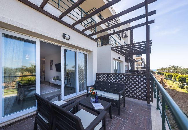 Your living space extends to the 8m2 balcony, furnished with garden furniture, where you can relax and watch the beautiful Mediterranean sea view at both sunrise and sunset. The apartment is located at Thalassa Beach Resort & Spa, in Bafra, on the south east coast of North Cyprus. Thalassa is a residential beachfront resort, perfect for couples, solo travellers as well as families. It is a fantastic resort for long holidays, mini-breaks and weekend getaway holidays in North Cyprus.