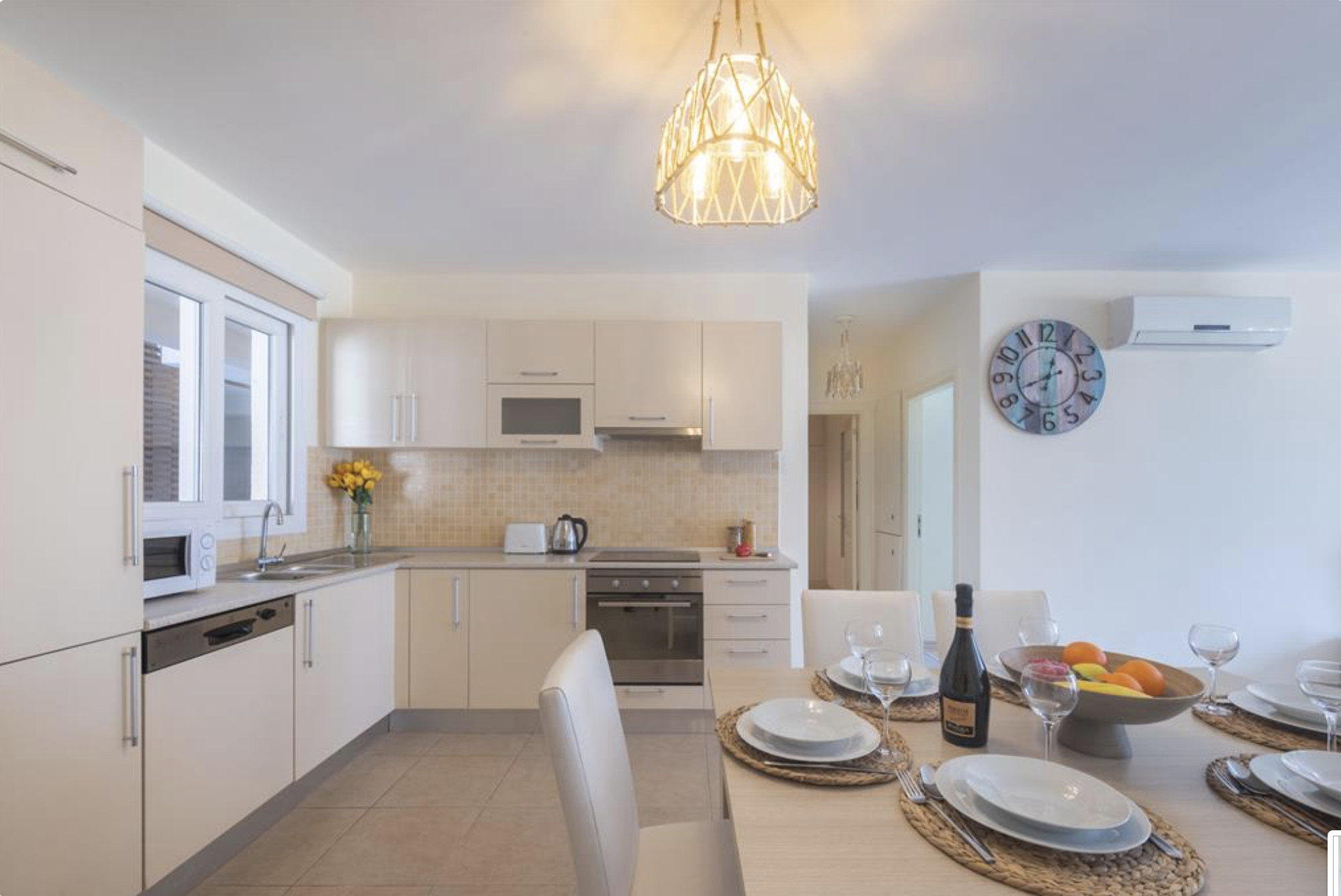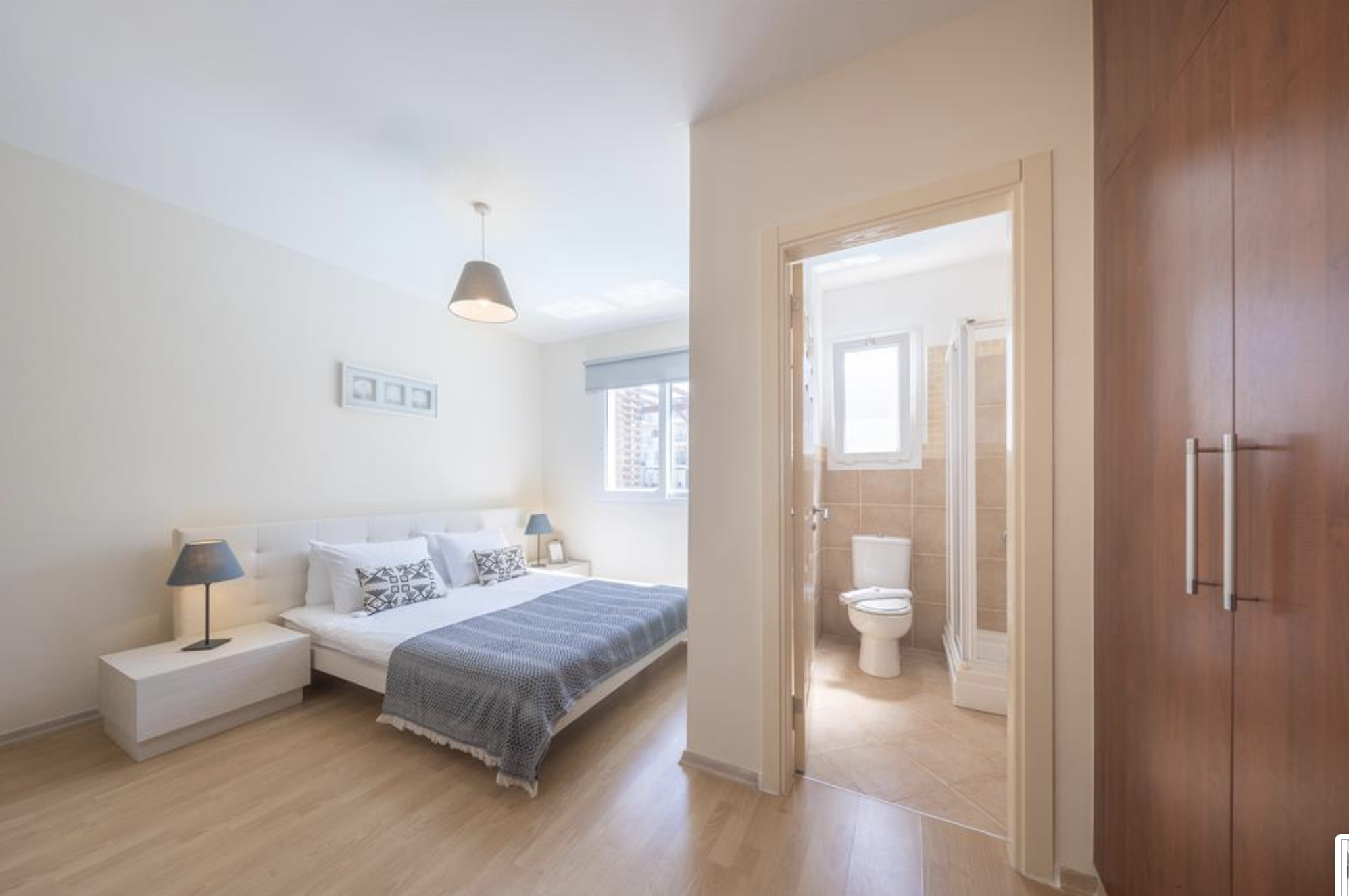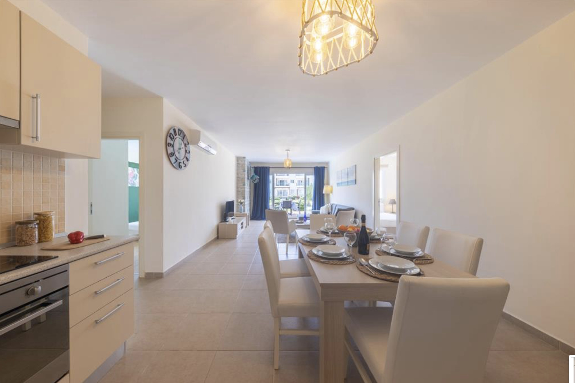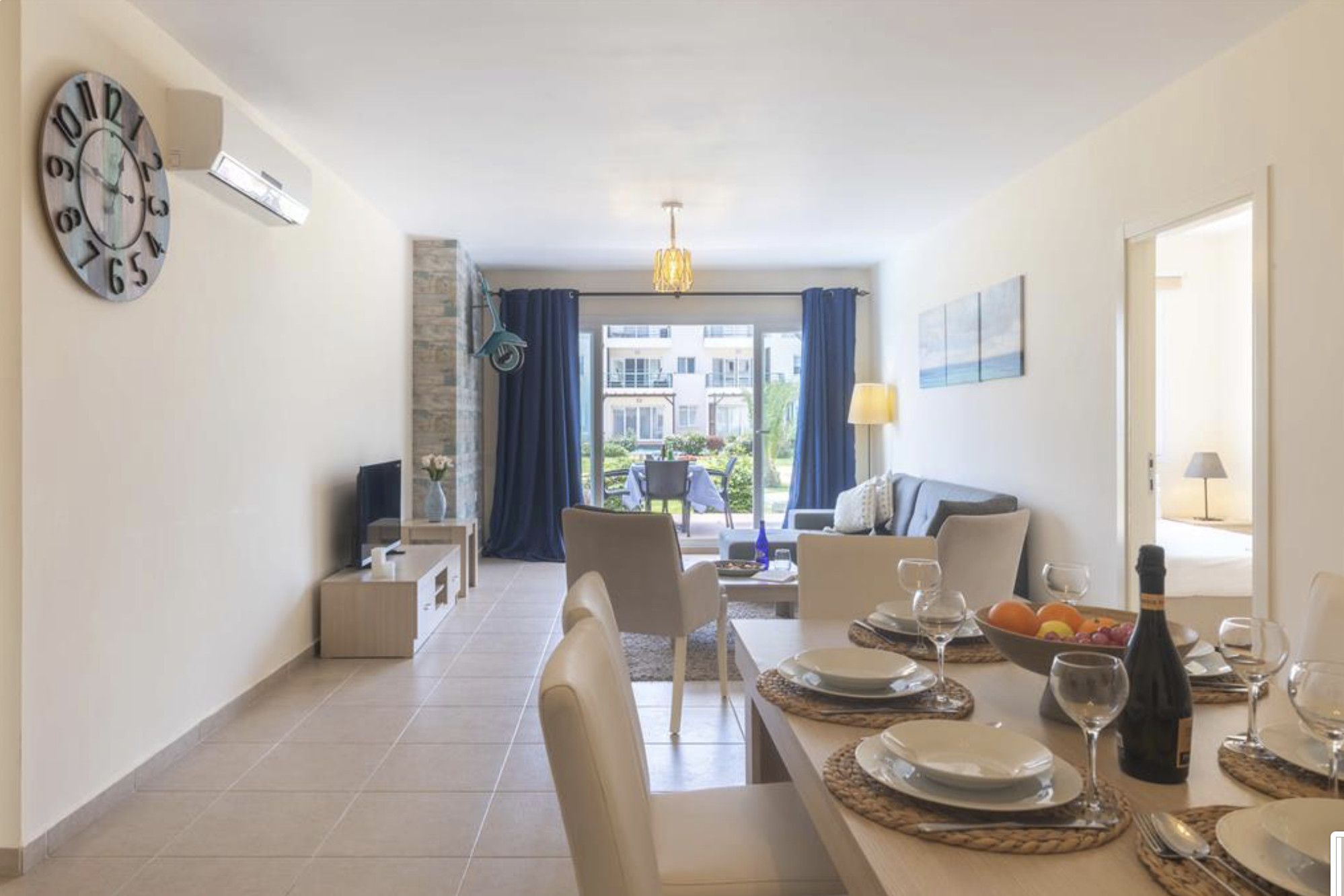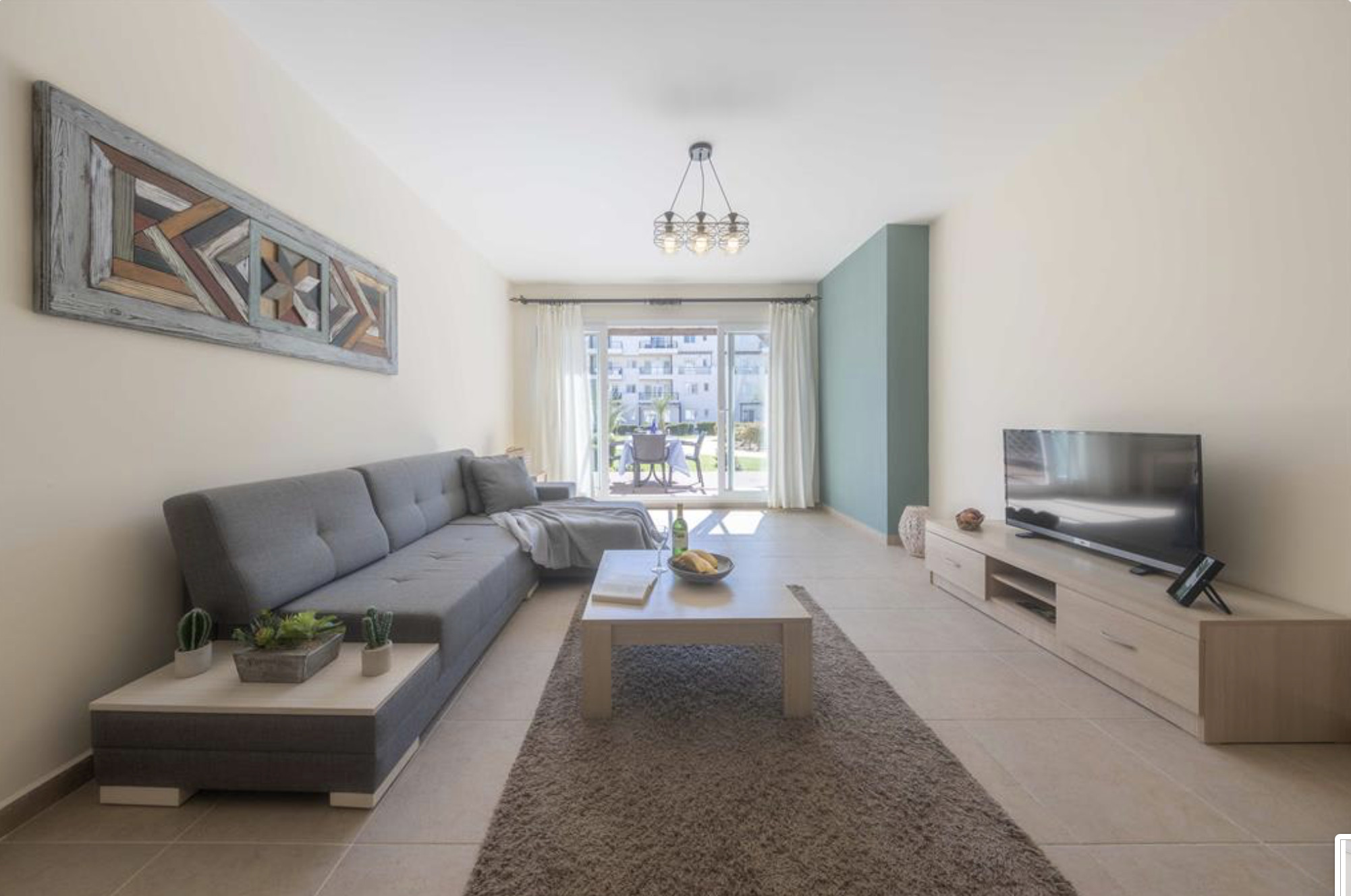 A Spacious 90m2 Three Bedroom Apartment featuring a private pool for guests who are looking for this extra, pampering privacy. This tastefully furnished apartment has a large living room and 3 seperate bedrooms. The apartment has a queen size bed in the master bedroom, 2 single beds in the other, 2nd bedroom and a single bed in the 3rd bedroom. The Apartment is equipped with all essentials such as air conditioning, washing machine, iron, TV and more. Fully equipped kitchen supplied with gas/electric hob, oven, refrigerator & freezer, toaster, kettle dishes/cutlery, and kitchen utensils.