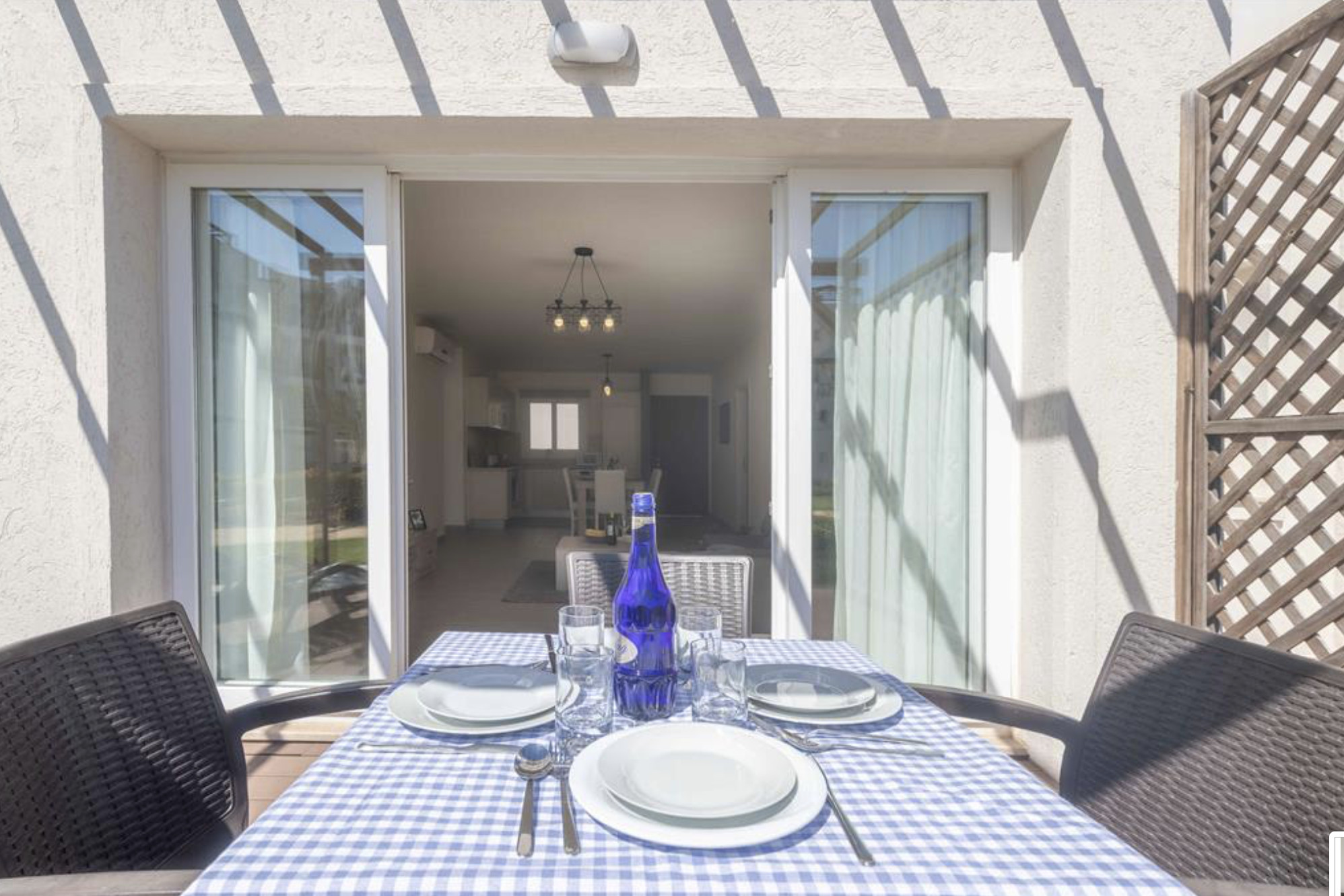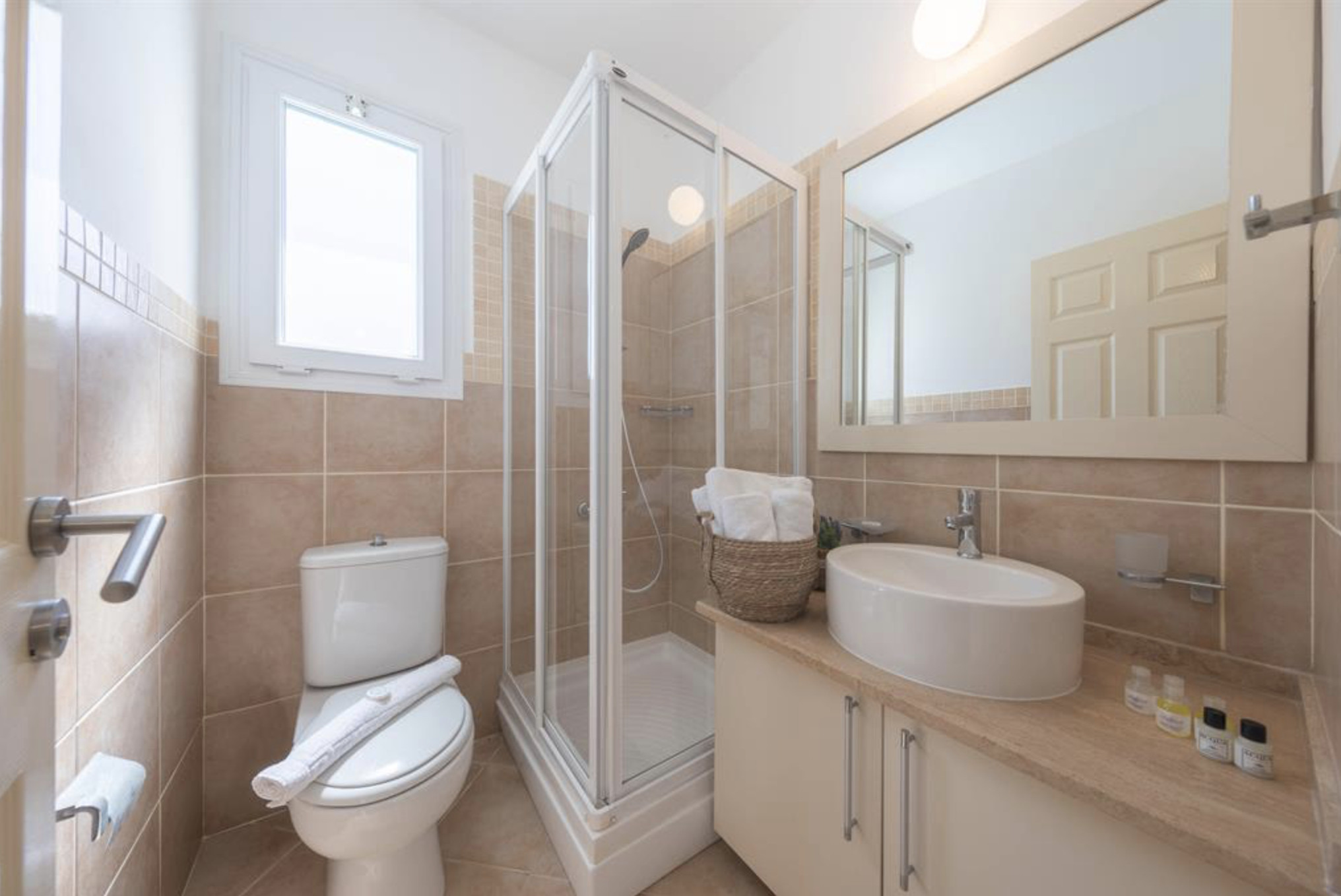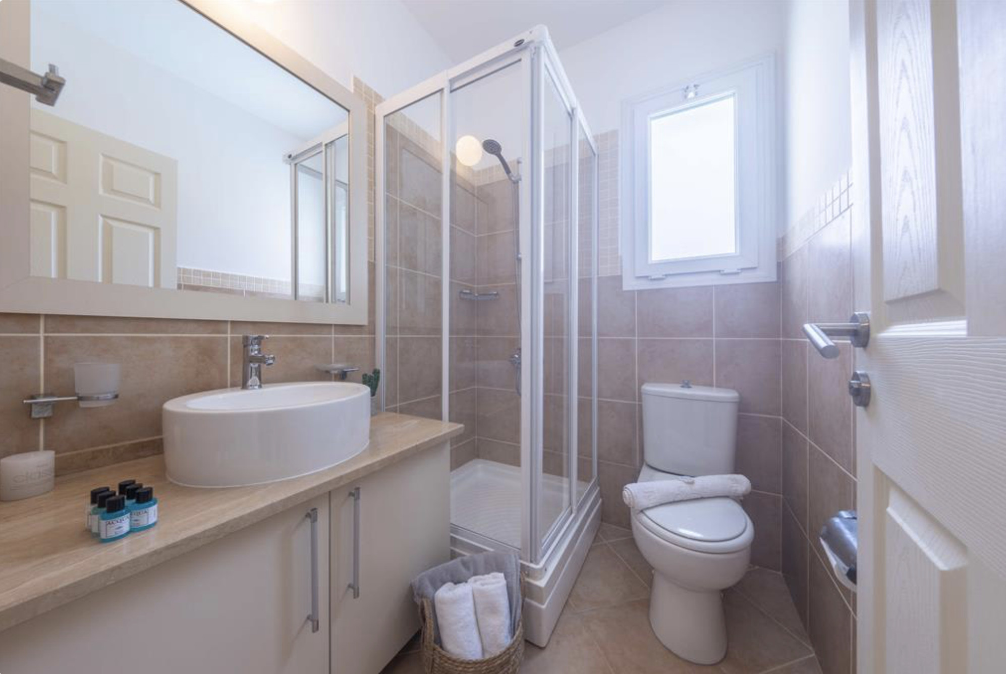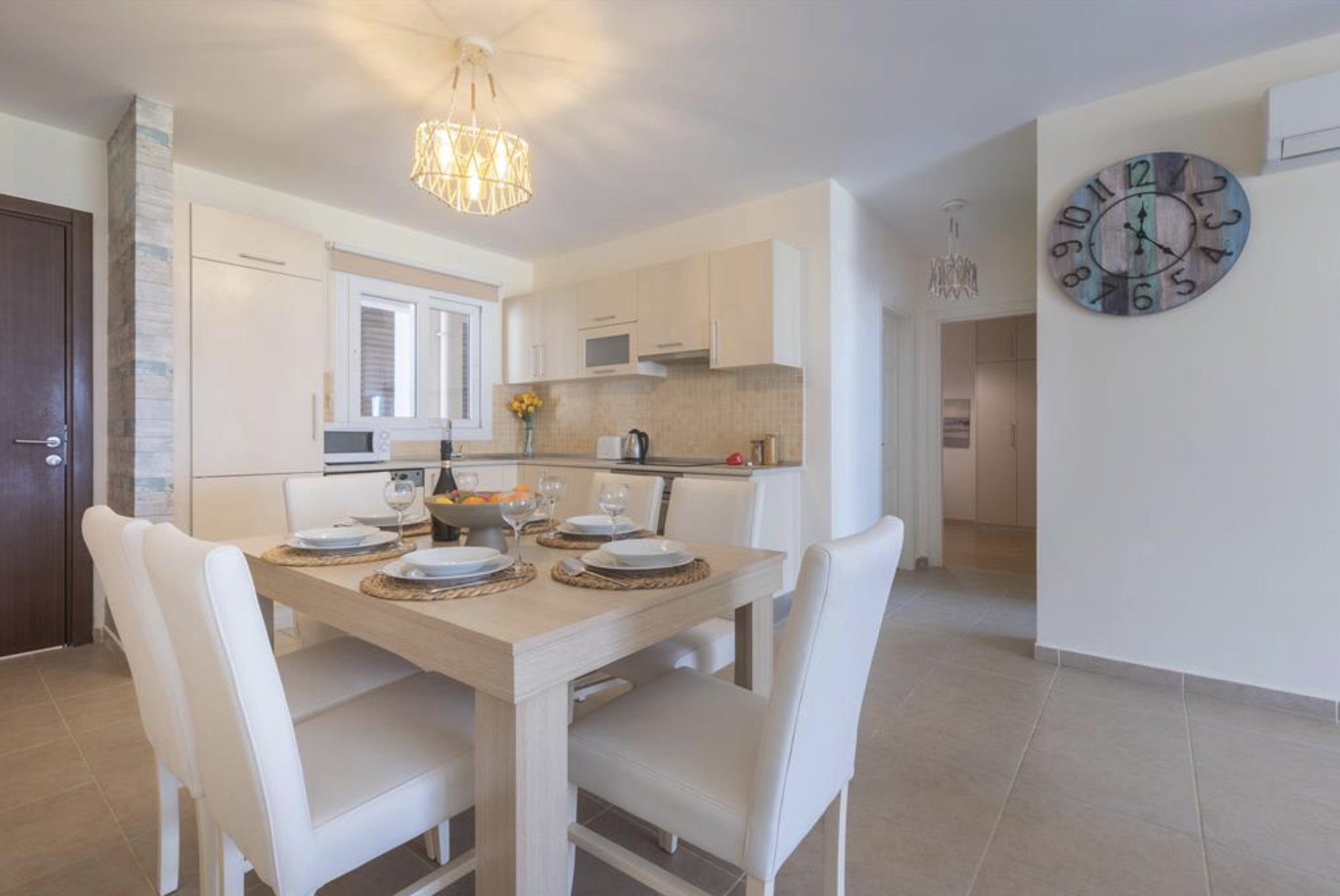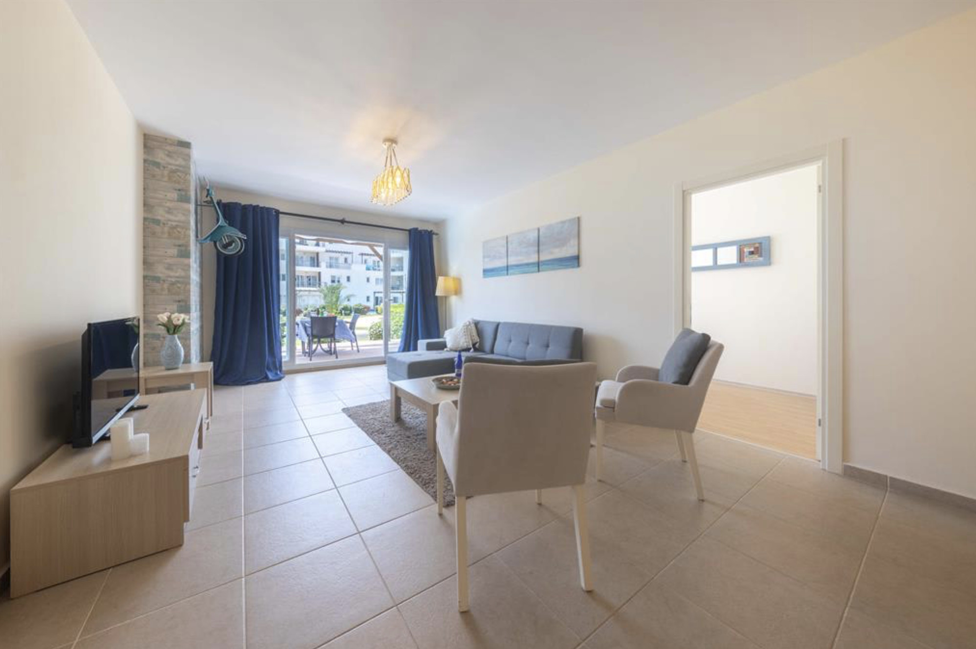 A Spacious 90m2 Three Bedroom Apartment featuring a private pool for guests who are looking for this extra, pampering privacy. This tastefully furnished apartment has a large living room and 3 seperate bedrooms. The apartment has a queen size bed in the master bedroom, 2 single beds in the other, 2nd bedroom and a single bed in the 3rd bedroom. The Apartment is equipped with all essentials such as air conditioning, washing machine, iron, TV and more. Fully equipped kitchen supplied with gas/electric hob, oven, refrigerator & freezer, toaster, kettle dishes/cutlery, and kitchen utensils.