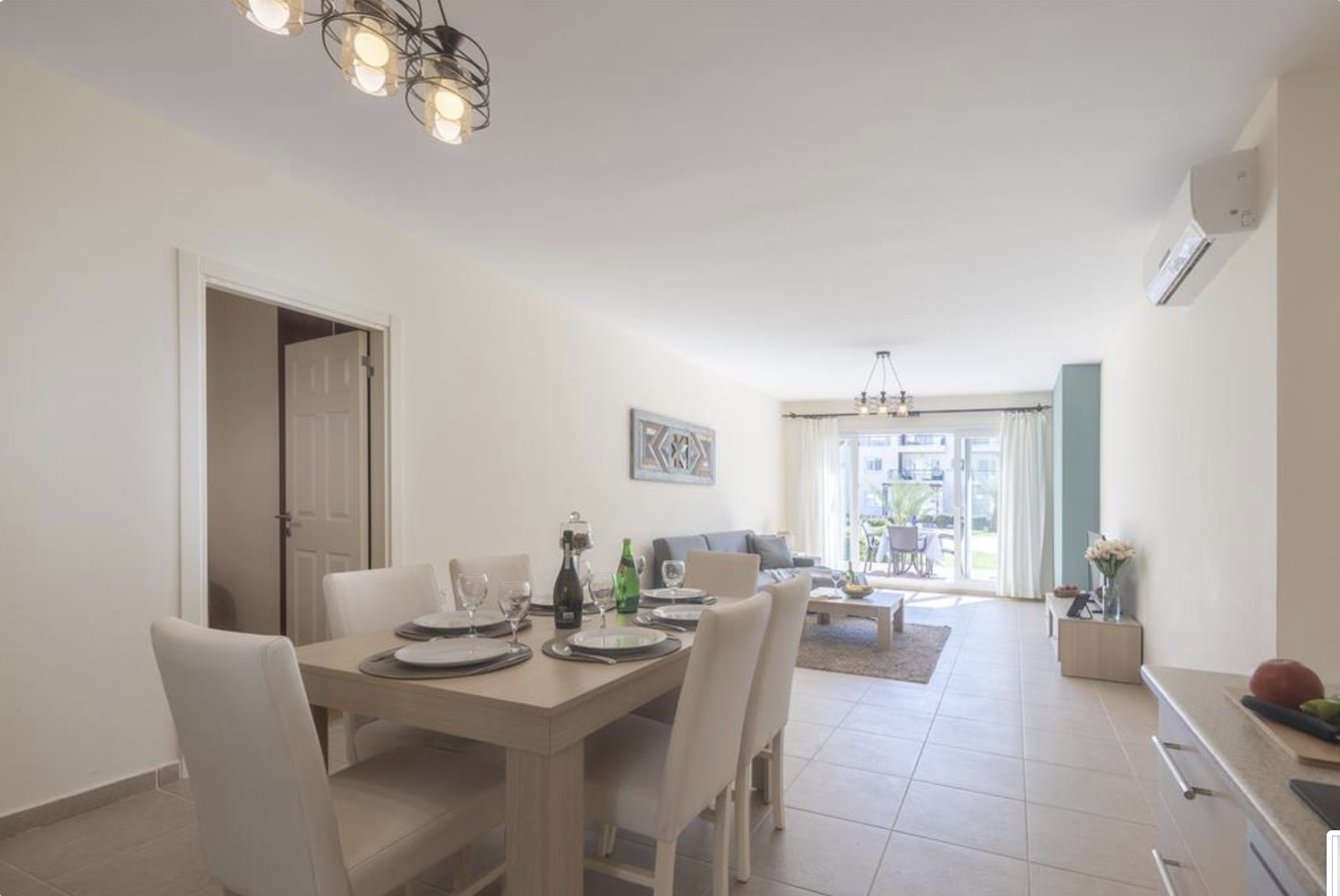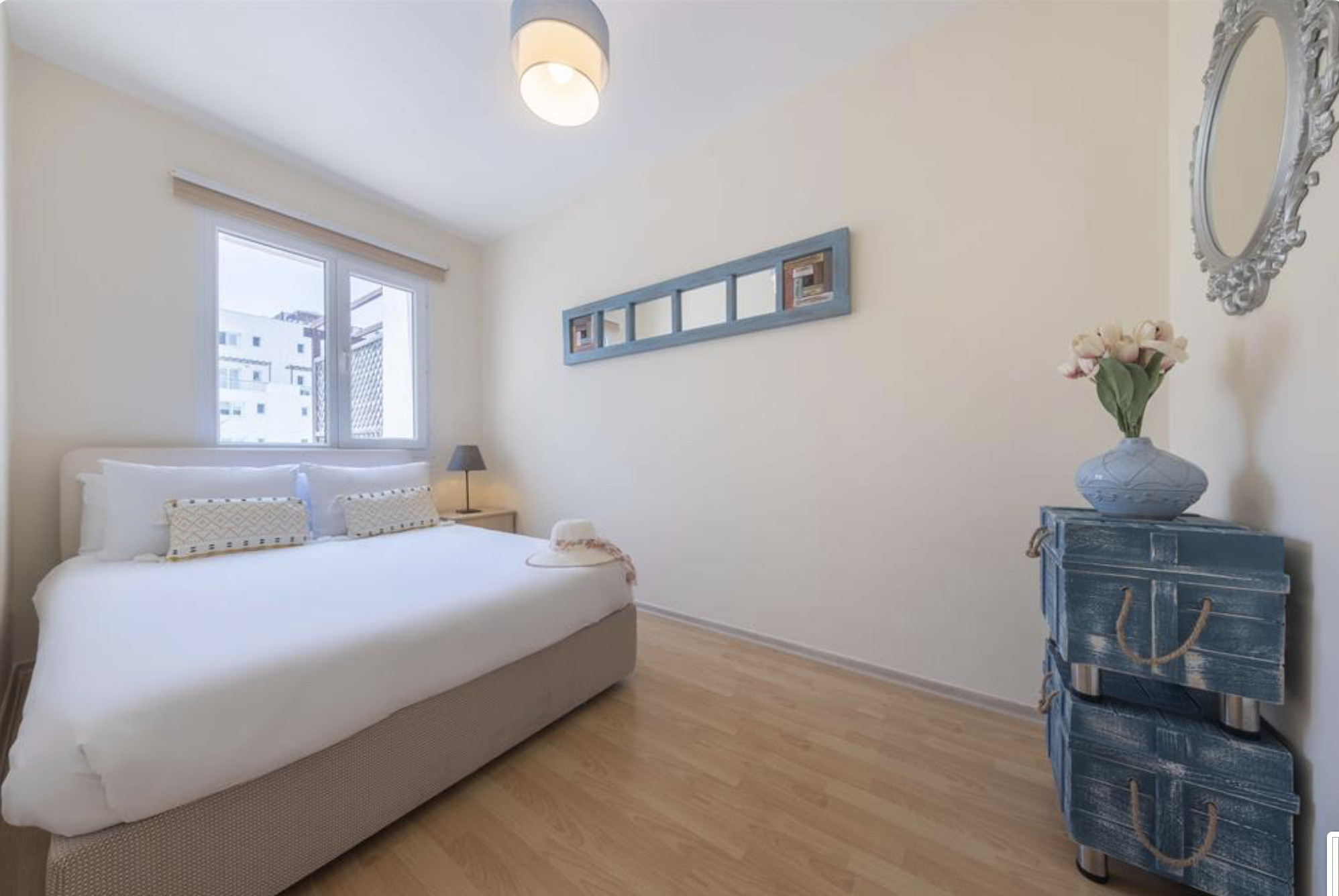 Your living space extends to the 8m2 balcony, furnished with garden furniture, where you can relax and watch the beautiful Mediterranean sea view at both sunrise and sunset. The apartment is located at Thalassa Beach Resort & Spa, in Bafra, on the south east coast of North Cyprus. Thalassa is a residential beachfront resort, perfect for couples, solo travellers as well as families. It is a fantastic resort for long holidays, mini-breaks and weekend getaway holidays in North Cyprus.