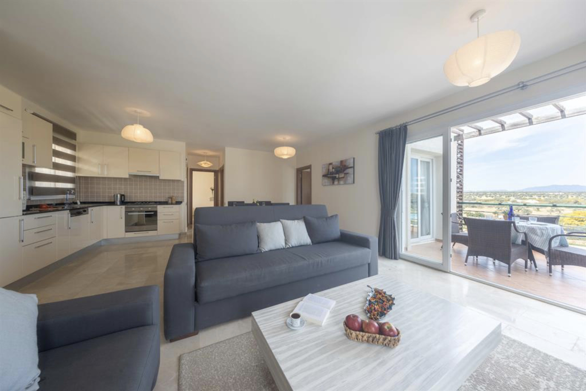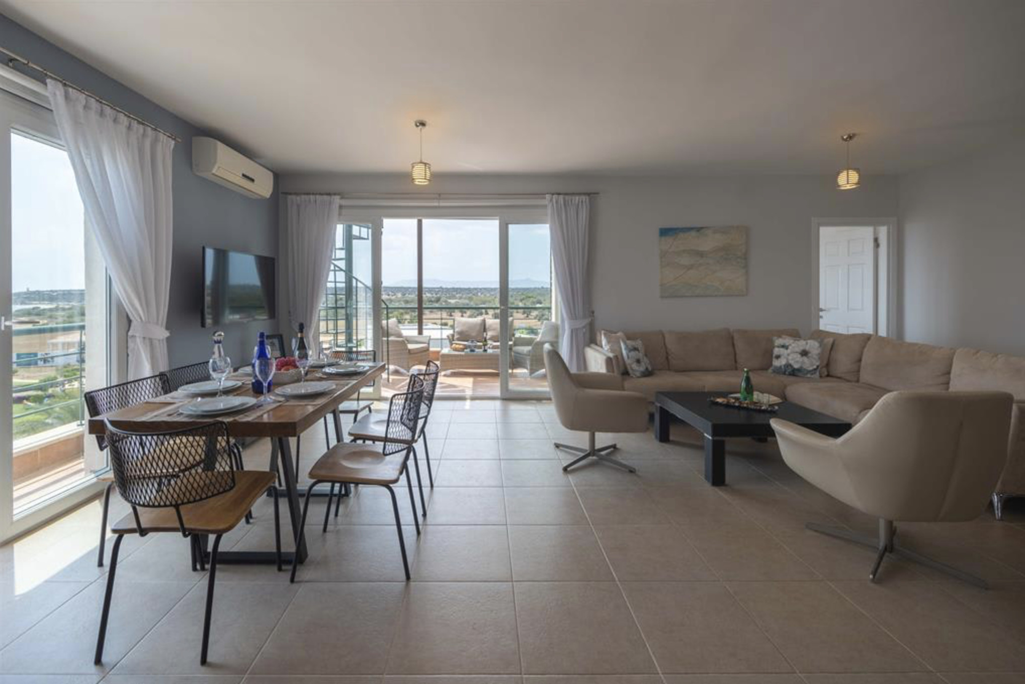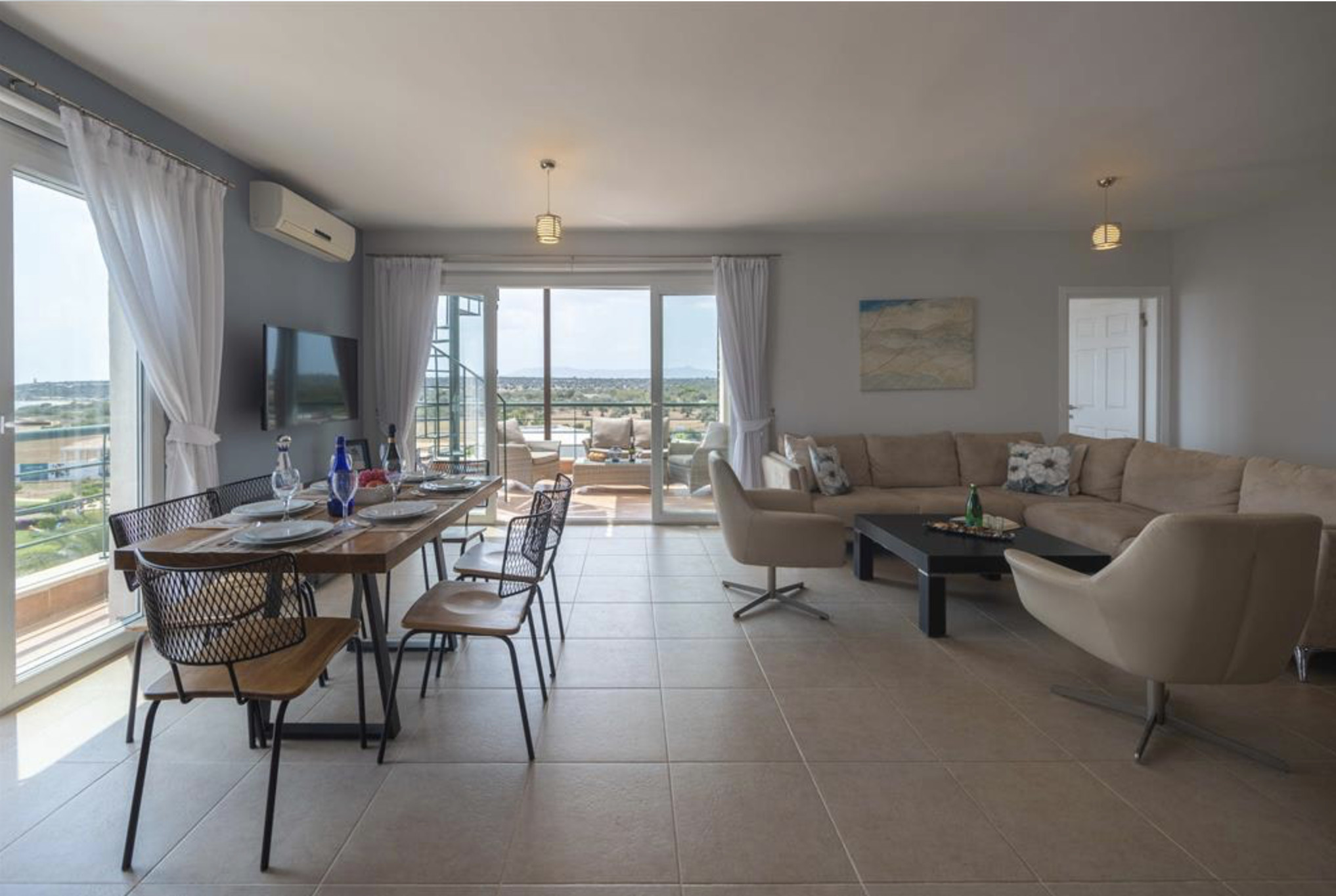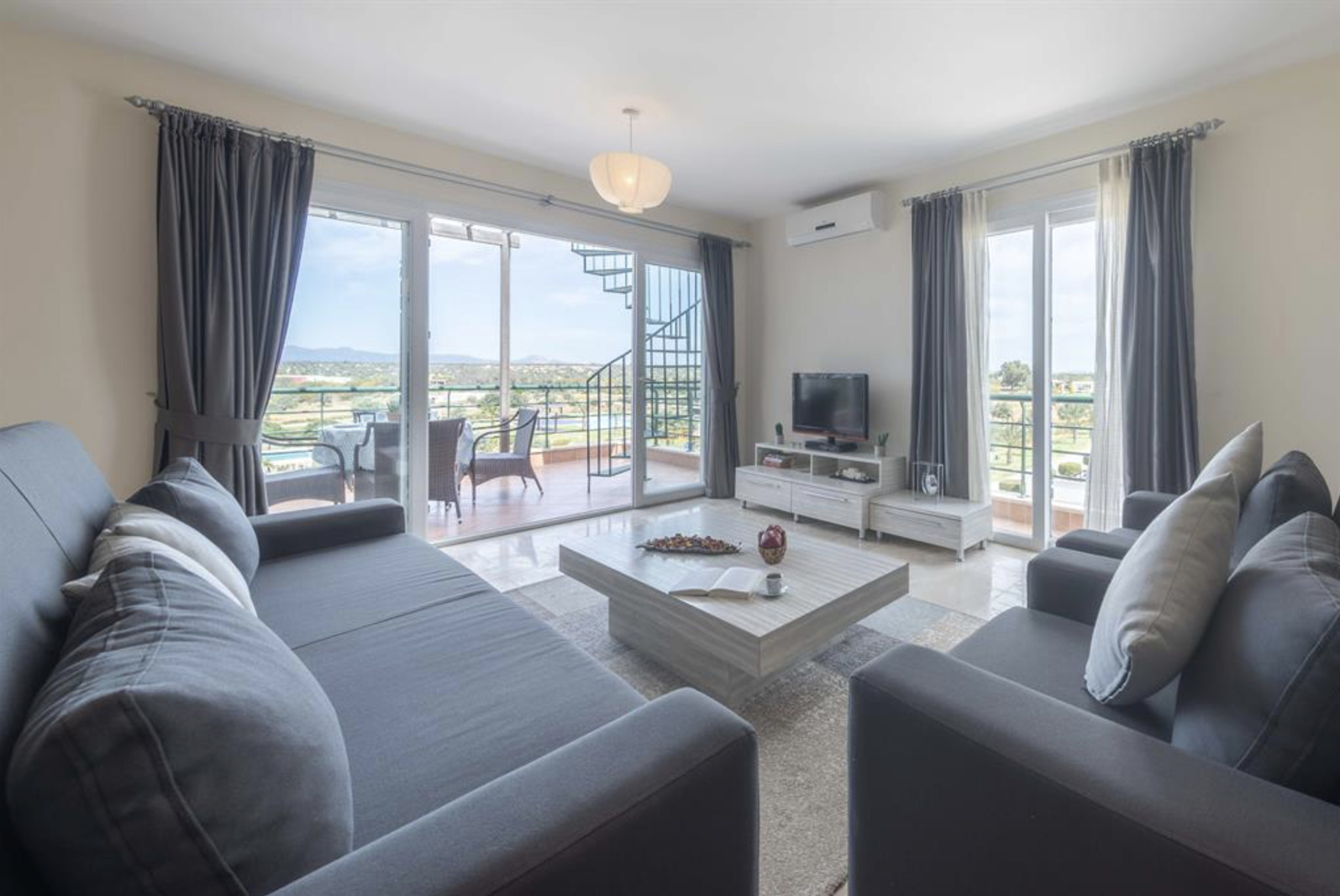 Your living space extends to the 10m2 balcony, furnished with garden furniture, where you can relax and watch the beautiful Mediterranean sea view at both sunrise and sunset. The apartment is located at Thalassa Beach Resort & Spa, in Bafra, on the south east coast of North Cyprus. Thalassa is a residential beachfront resort, perfect for couples, solo travellers as well as families. It is a fantastic resort for long holidays, mini-breaks and weekend getaway holidays in North Cyprus.