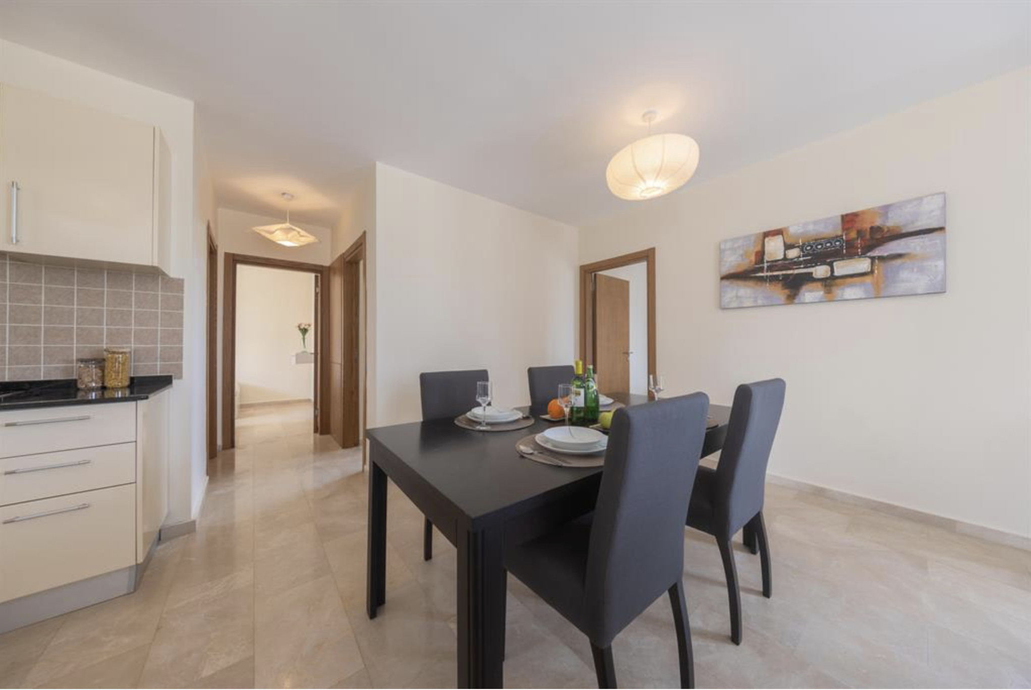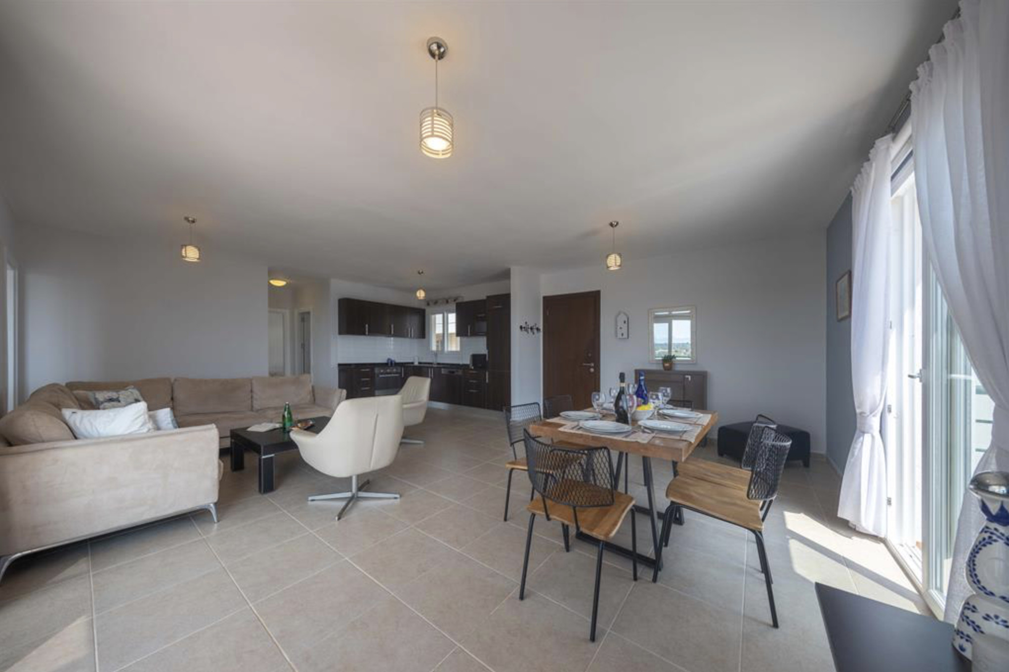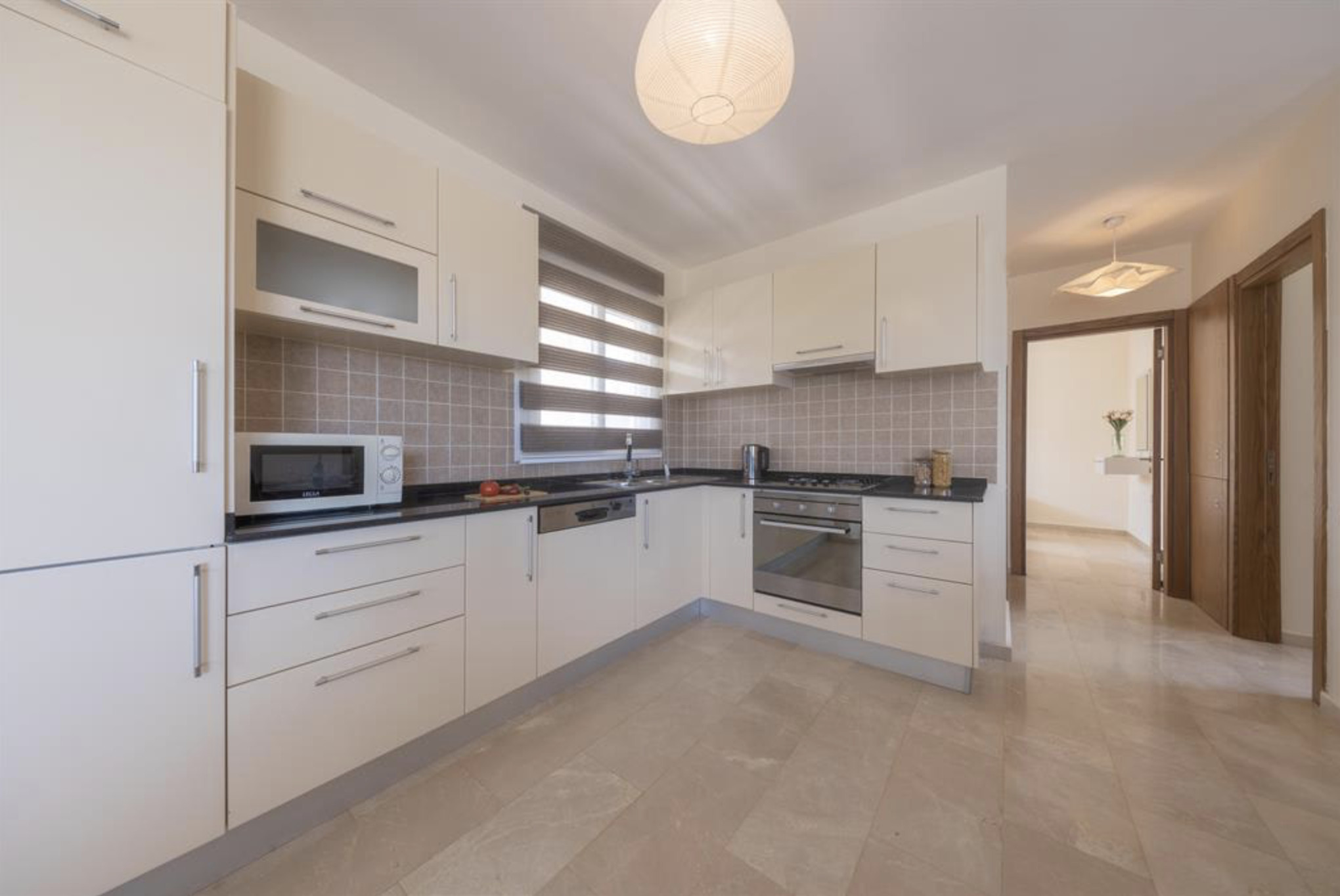 A spacious, 80m2 Three bedroom apartment offering space and comfort for families or group of friends. The apartment has a queen size bed in the master bedroom, 2 single beds in the other, 2nd bedroom and a single bed in the 3rd bedroom. The Apartment is equipped with all essentials such as air conditioning, washing machine, iron, TV and more. Fully equipped kitchen supplied with gas/electric hob, oven, refrigerator & freezer, toaster, kettle dishes/cutlery, and kitchen utensils.