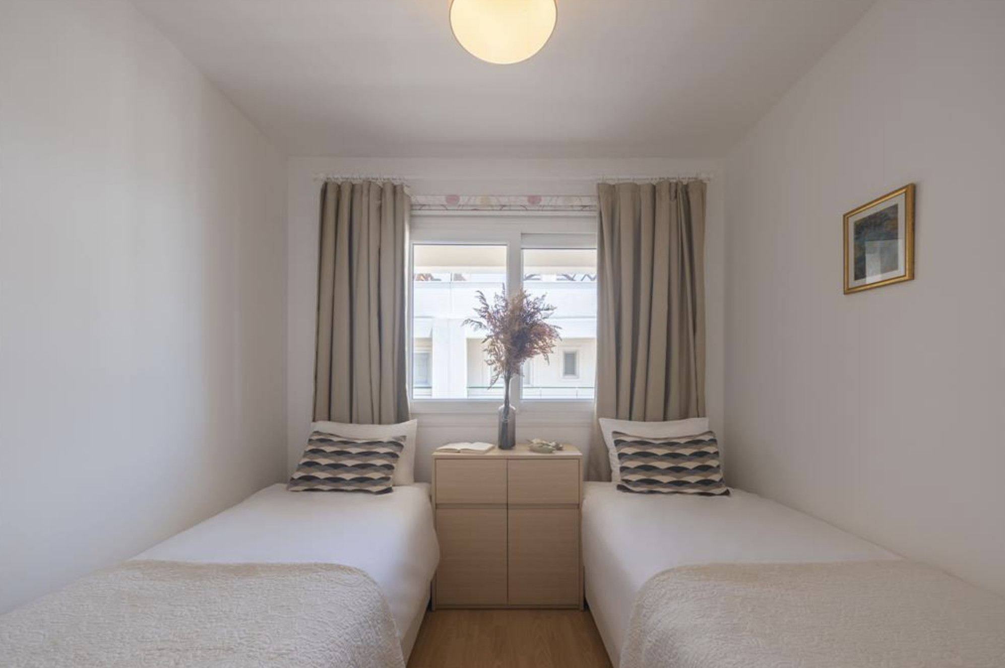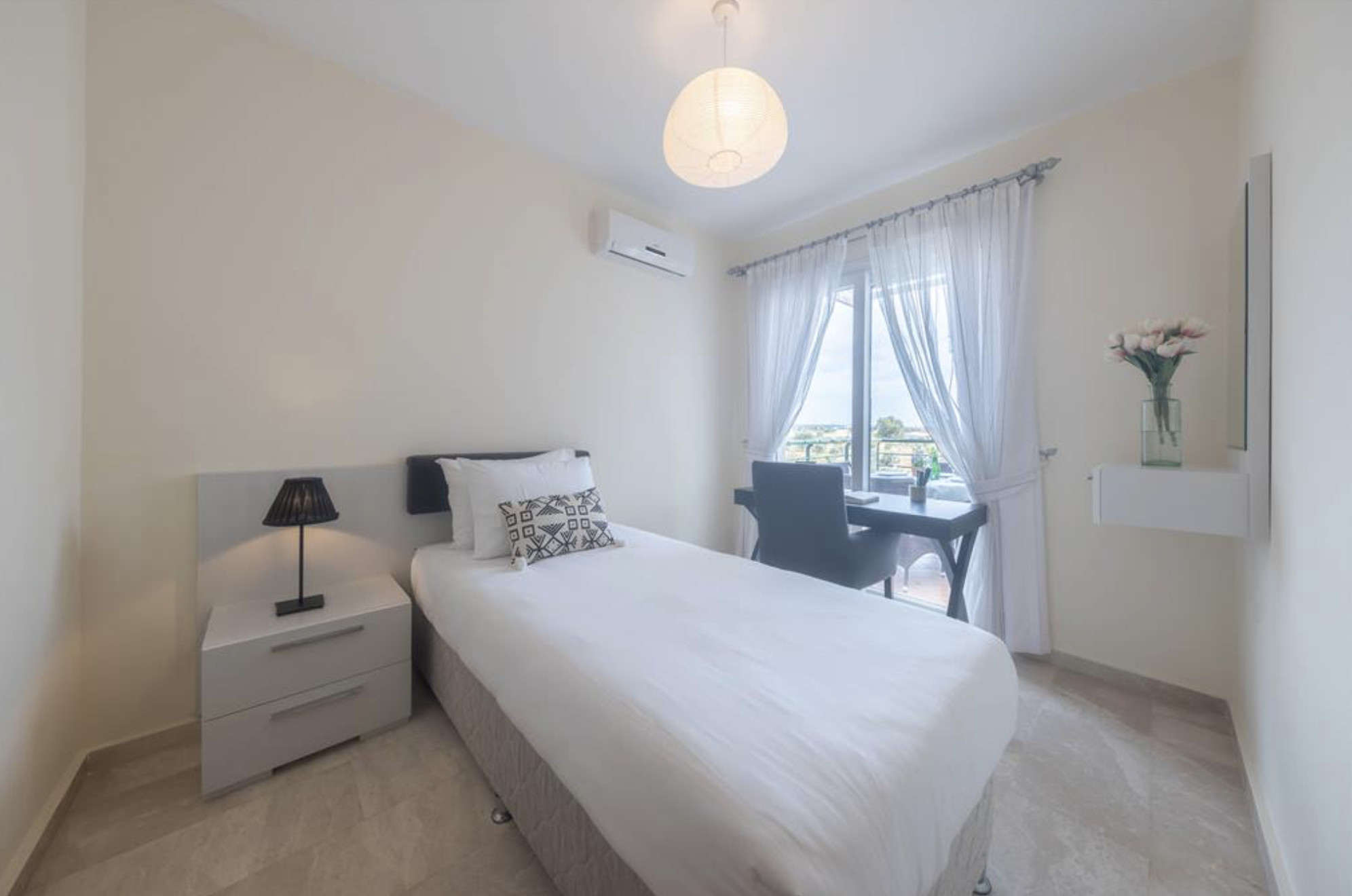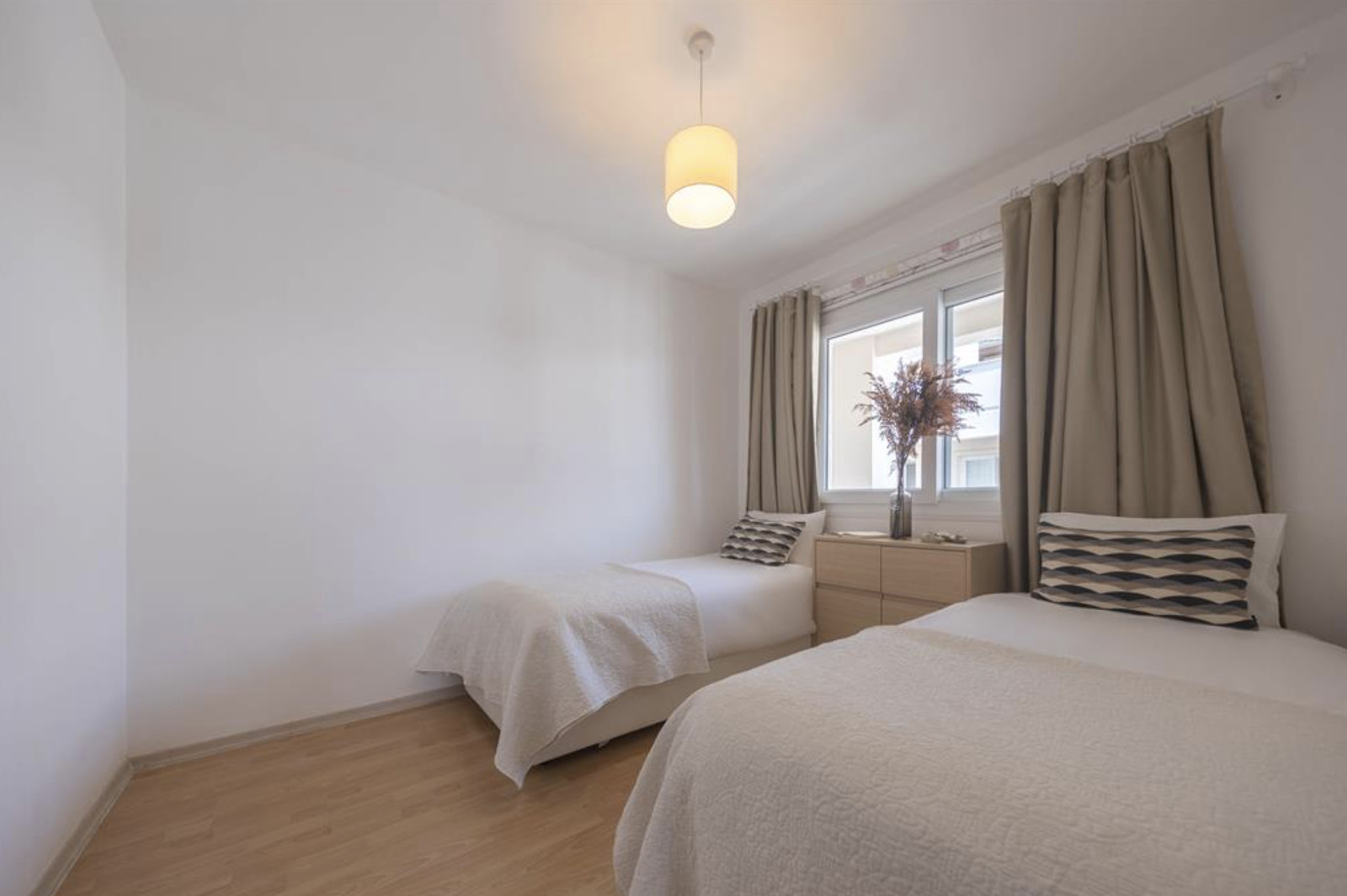 A Spacious 60m2 Two Bedroom apartment with a living room and 2 seperate bedrooms. One bedroom's window is facing the living area while the other bedroom has an external window overlooking outside. The Apartment is tastefully designed in a modern decor and it is fully furnished with all essentials such as air conditioning, washing machine, iron, TV and more. Fully equipped kitchen supplied with gas/electric hob, oven, refrigerator & freezer, toaster, kettle dishes/cutlery, and kitchen utensils.
