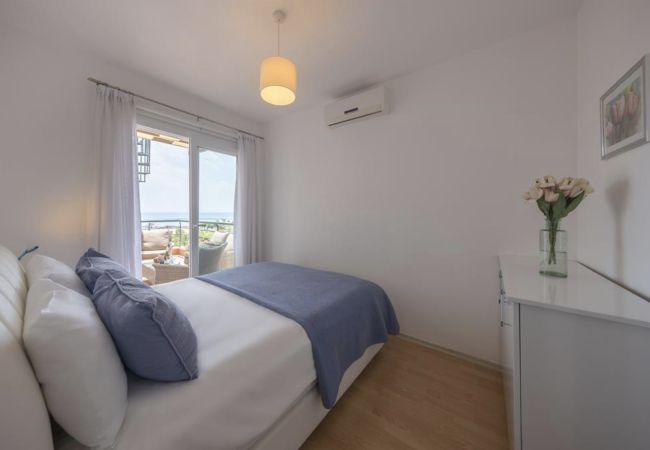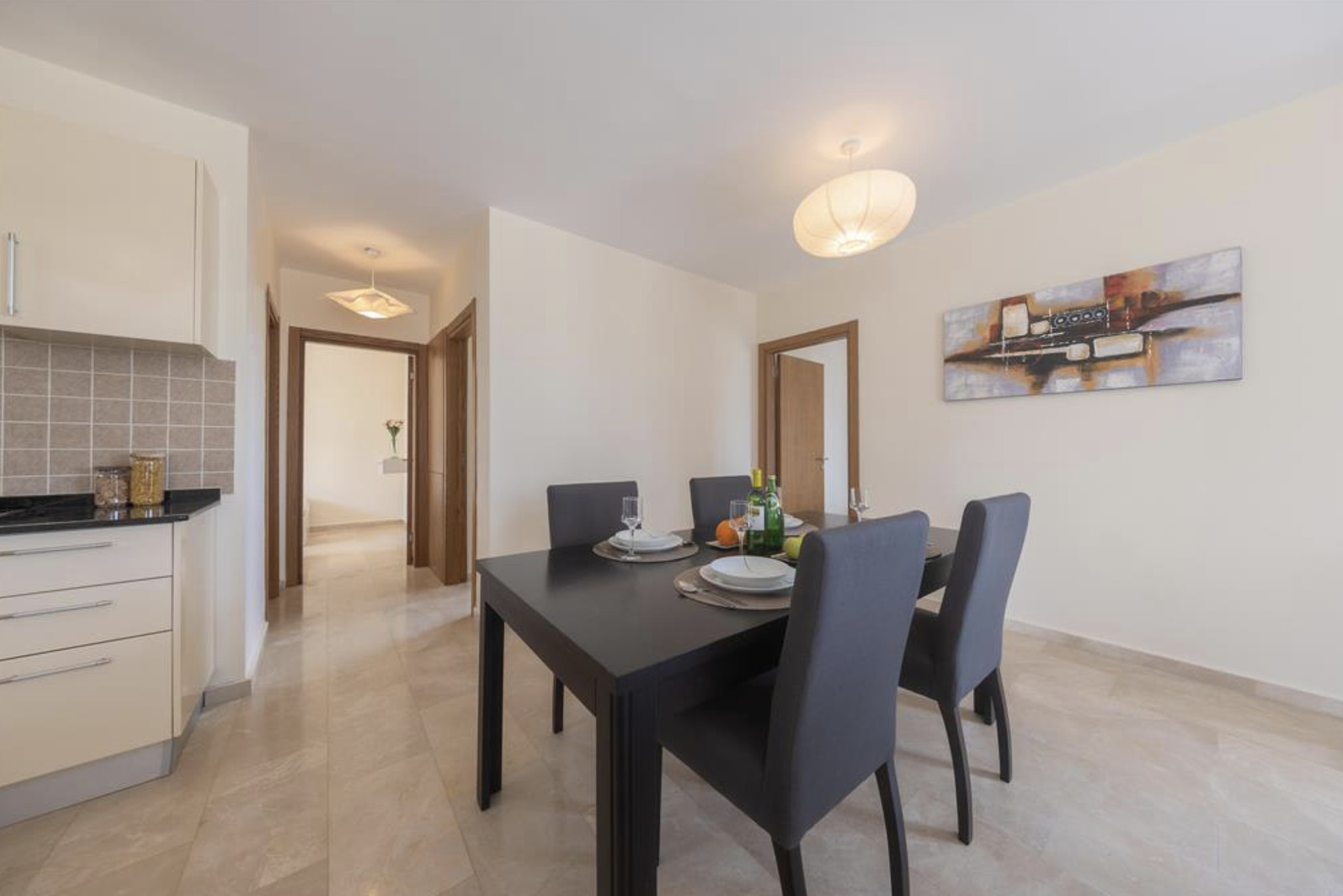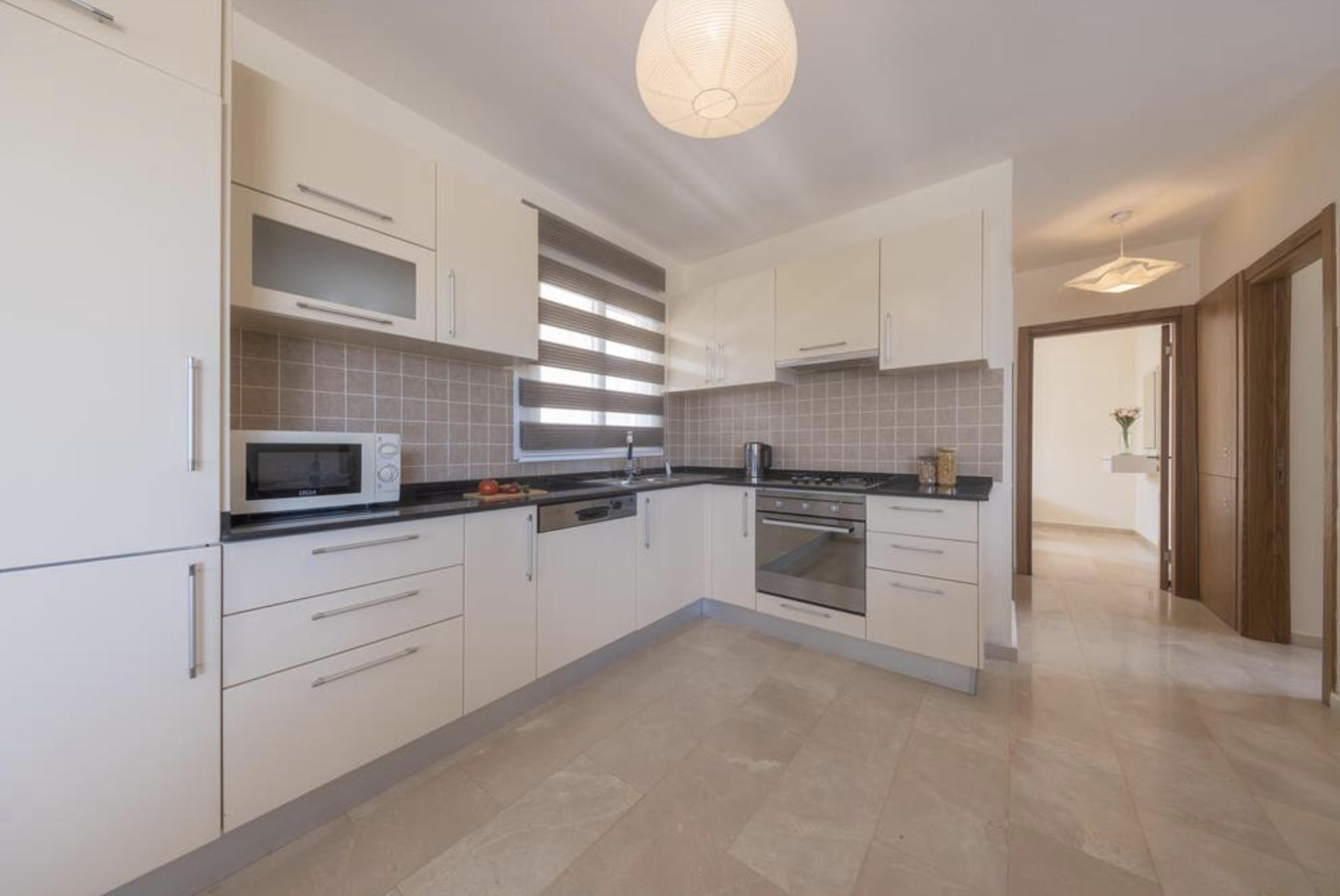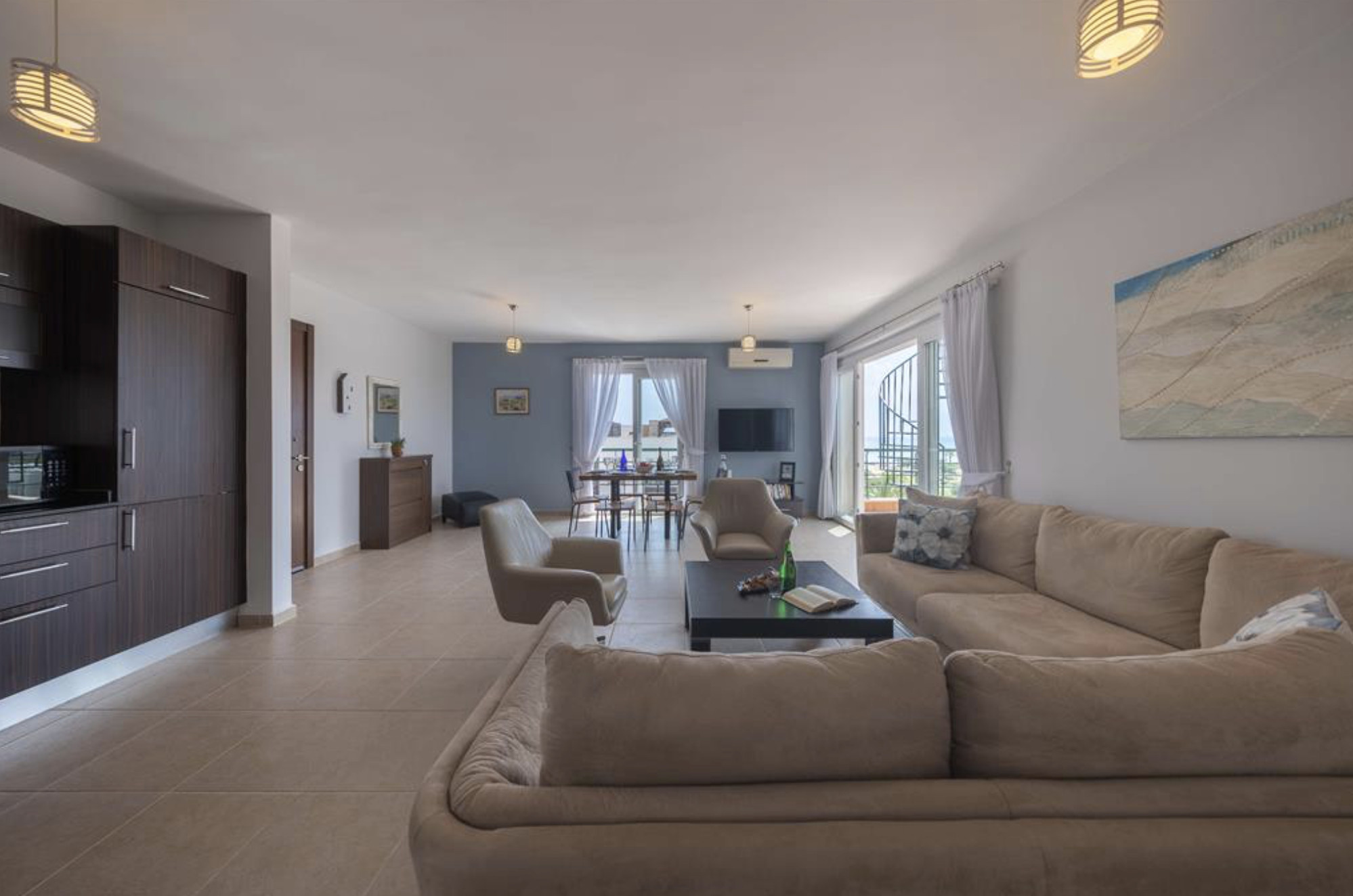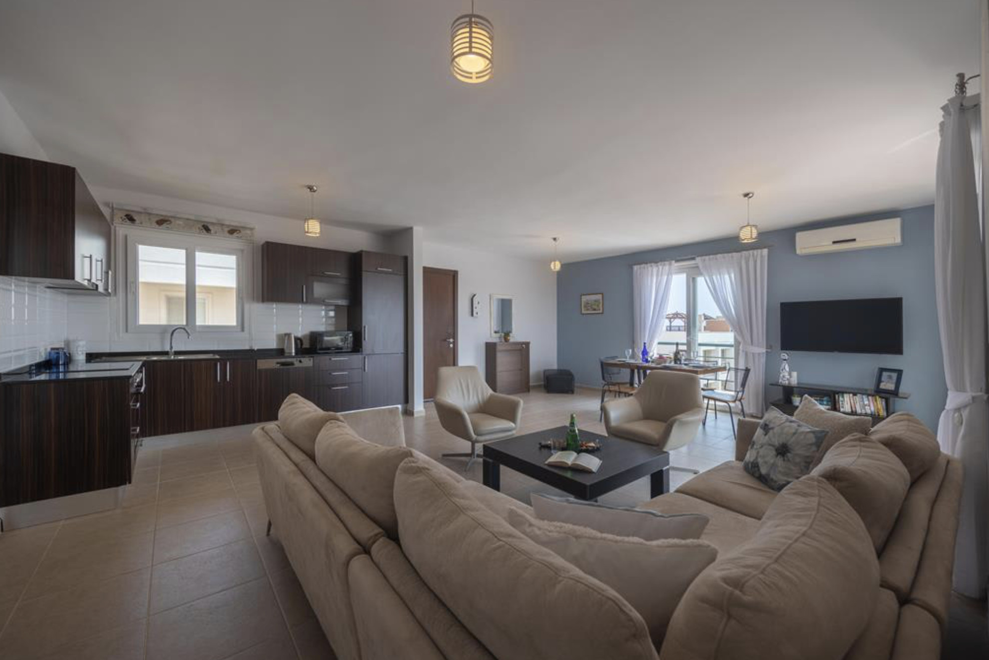 A Spacious 68m2 Two Bedroom apartment with a spacious and stylish living room and 2 seperate bedrooms. The apartment has a queen size bed in the master bedroom, and 2 single beds in the other, 2nd bedroom. The Apartment is tastefully designed in a modern decor and it is fully furnished with all essentials such as air conditioning, washing machine, iron, TV and more. Fully equipped kitchen supplied with gas/electric hob, oven, refrigerator & freezer, toaster, kettle dishes/cutlery, and kitchen utensils.