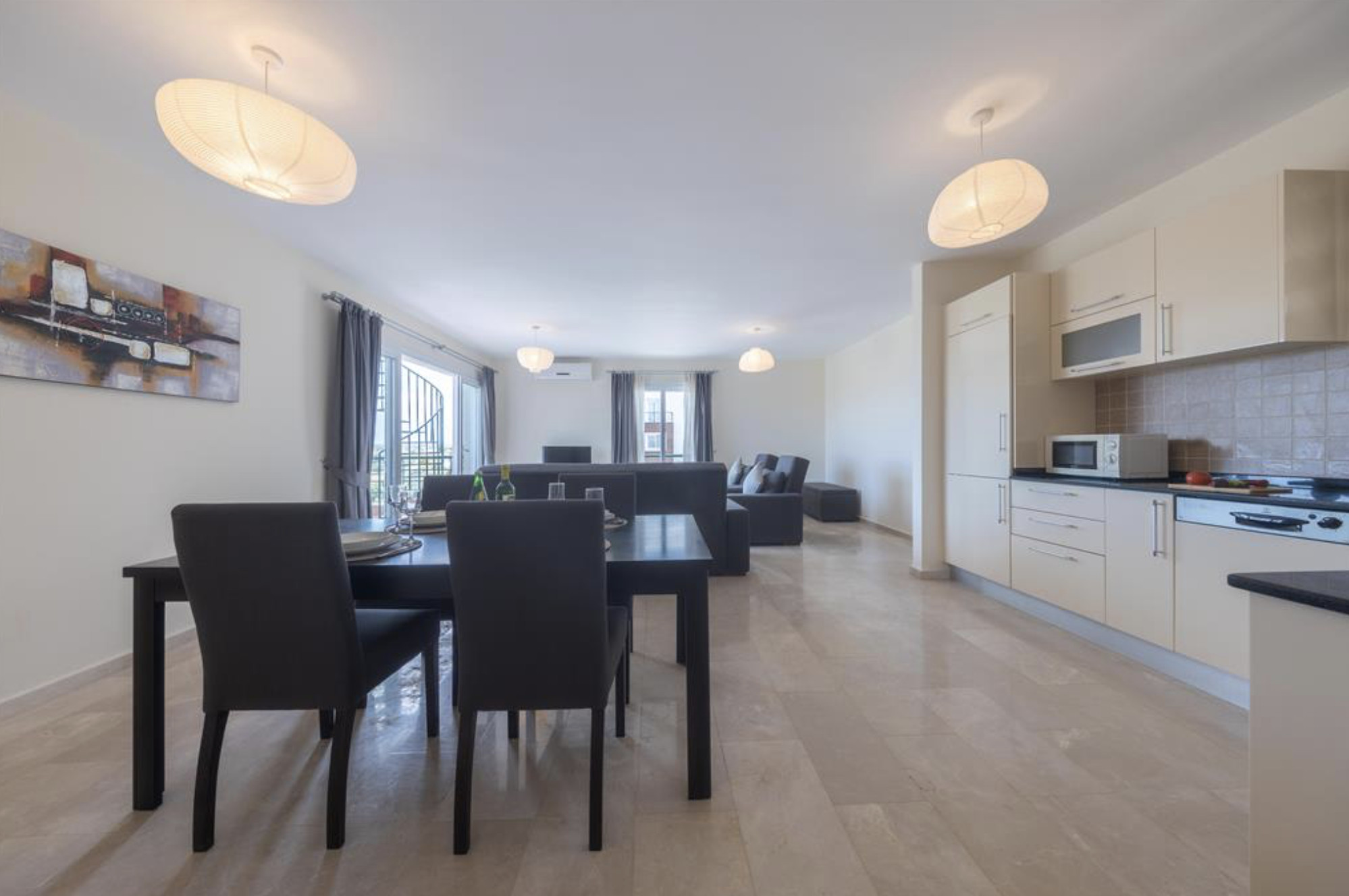 A Spacious 68m2 Two Bedroom Penthouse featuring a huge roof top with a jacuzzi bath tub. This tastefully furnished apartment has a large living room and 2 seperate bedrooms. The apartment has a queen size bed in the master bedroom, and 2 single beds in the other, 2nd bedroom. The roof top is accessible via spiral staircase and therefore guests travelling with young kids should practice extra care when booking this apartment. The Apartment is equipped with all essentials such as air conditioning, washing machine, iron, TV and more. Fully equipped kitchen supplied with gas/electric hob, oven, refrigerator & freezer, toaster, kettle dishes/cutlery, and kitchen utensils.