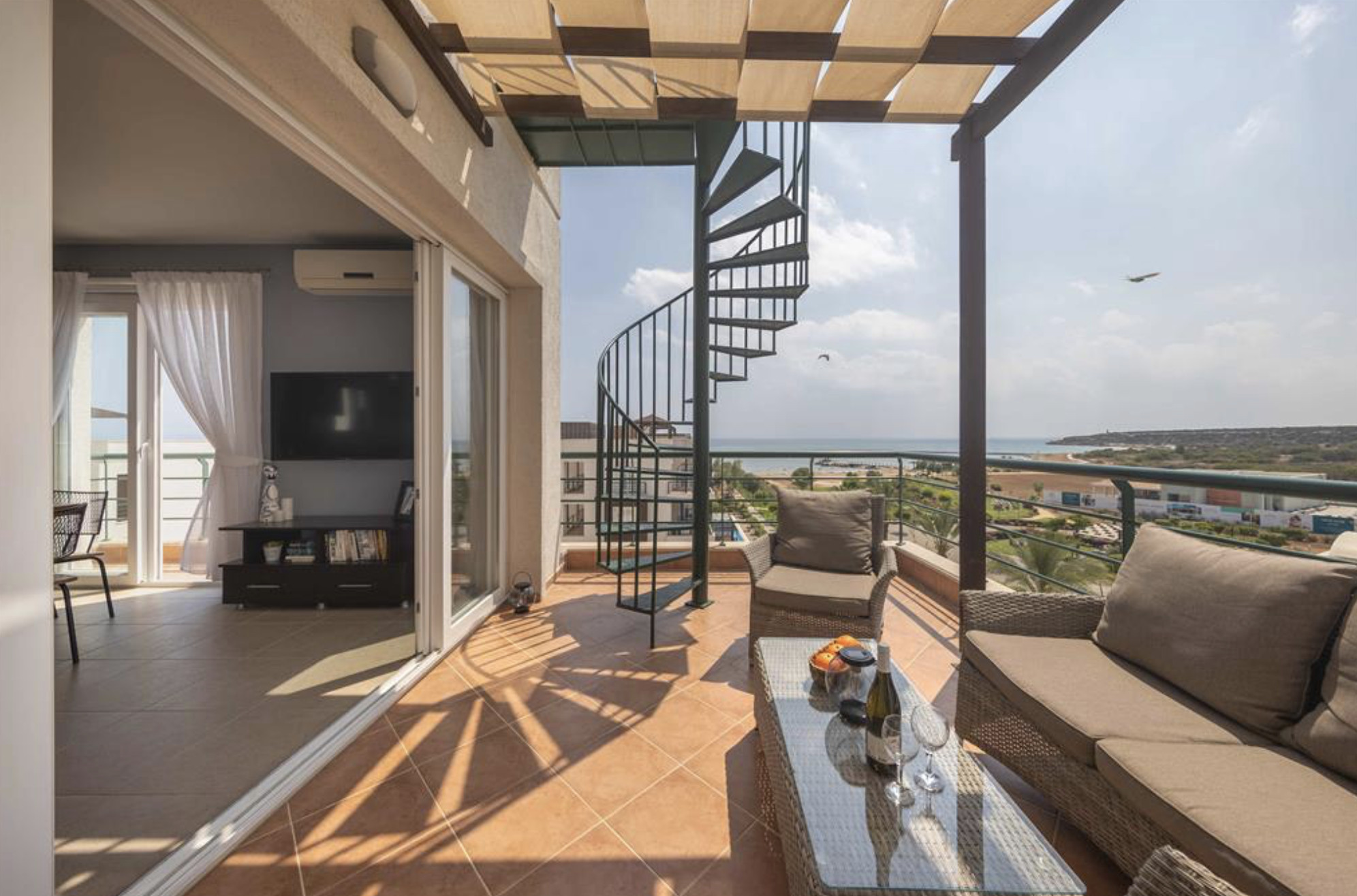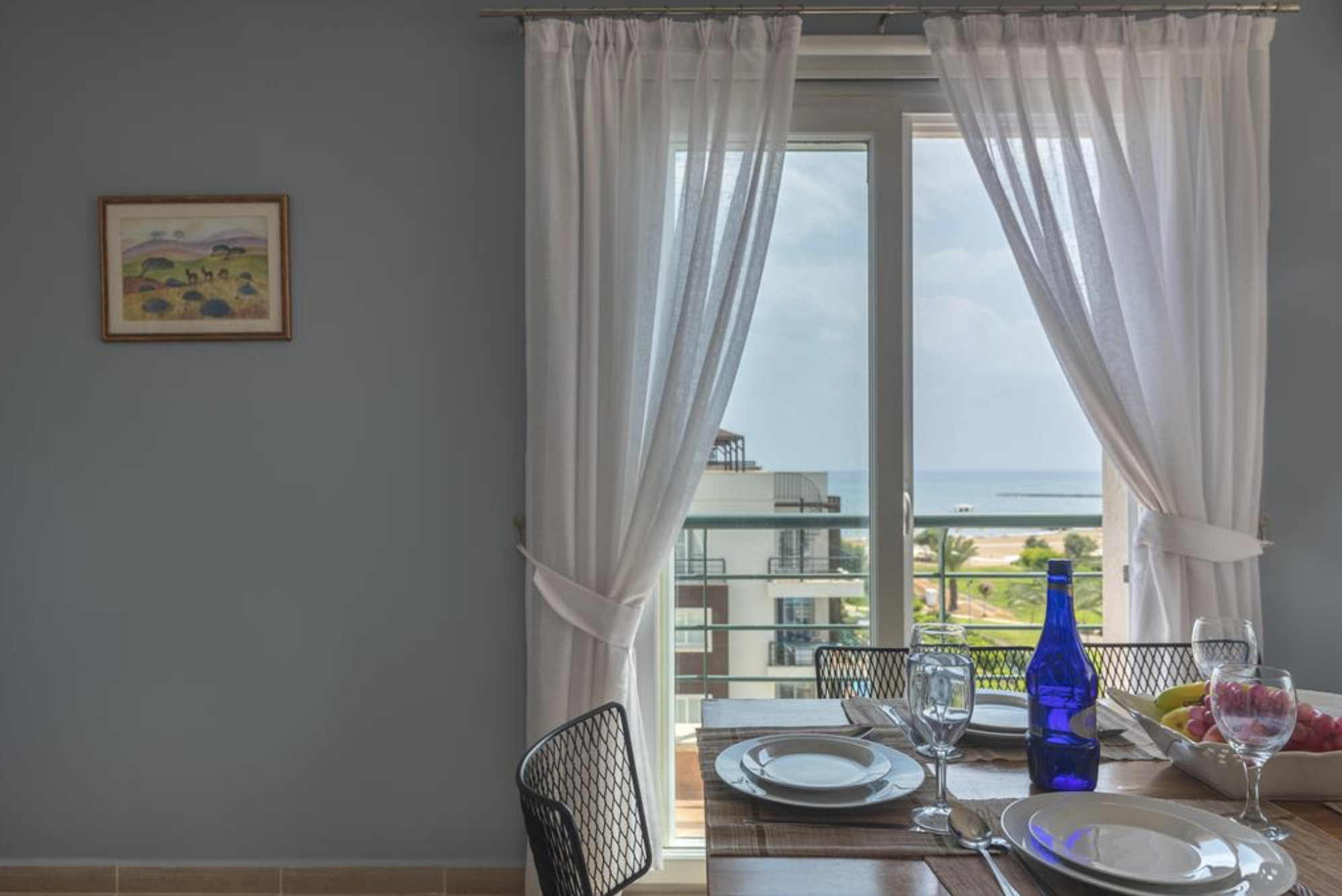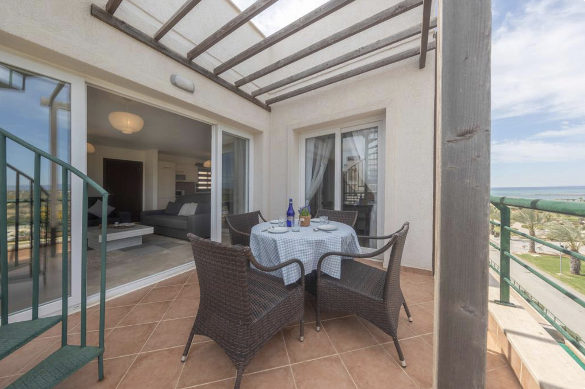 Your living space extends to the 8m2 balcony, furnished with garden furniture, where you can relax and watch the beautiful Mediterranean sea view at both sunrise and sunset. The apartment is located at Thalassa Beach Resort & Spa, in Bafra, on the south east coast of North Cyprus. Thalassa is a residential beachfront resort, perfect for couples, solo travellers as well as families. It is a fantastic resort for long holidays, mini-breaks and weekend getaway holidays in North Cyprus.